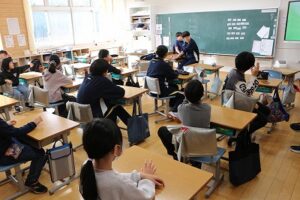 1年生から9年生までが参加する、きずなプロジェクトの交流授業を行いました。